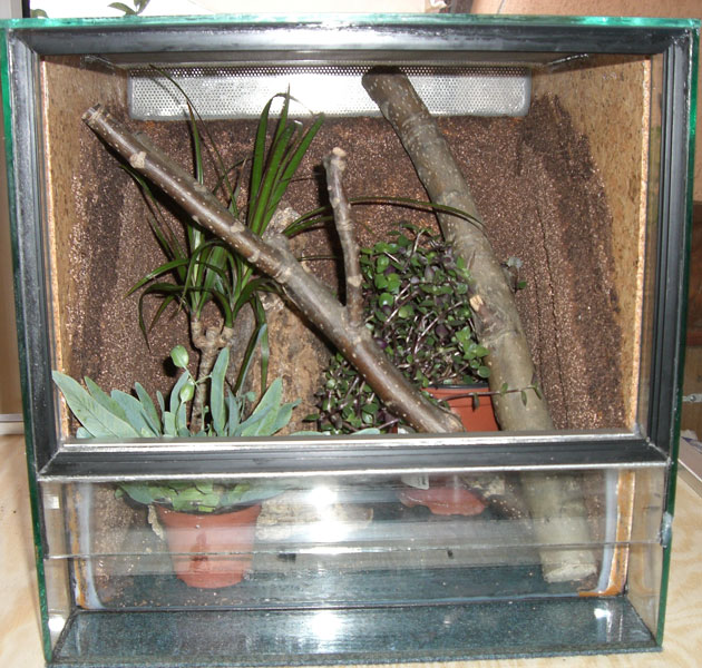 Am besten noch 2-3 flache Rindenstücke möglichst eng an die Wände stellen, diese werden gerne als Versteckplätze aufgesucht. Den Bodengrund könntest du dann z.B. noch mit Laub bedecken (Eichenlaub oder Rotbuche eignet sich sehr gut).