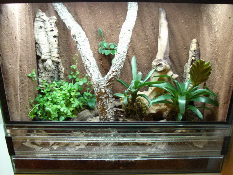 Sieht bereits sehr gut aus. Ich würde mehr Rindenstücke plan gegen die Wände stellen, bis hoch zur Deckscheibe. An Epiphyten gibt es sehr viel, die ihr aufbinden könntet. Schau mal hier: http://www.ahartig.de/pflanzen/1pflanzen.html